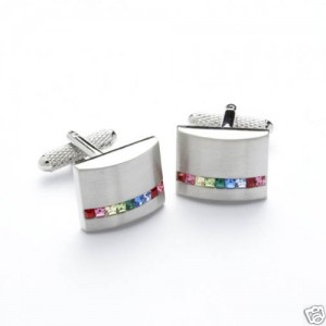 Brushed rhodium Cufflinks with multicoloured Swarovski crystal inserts.